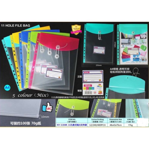 KIDARIO #KH-1164A A4 11孔豎式繩扣文件袋 (60個)