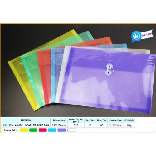 KIDARIO #KB-117A A4-18C 有繩膠公文袋 - 60個裝