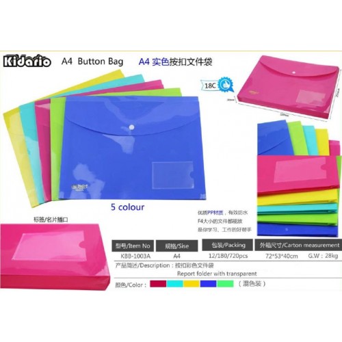 KIDARIO #KBB-1003A A4 實色按扣文件袋 (60個)